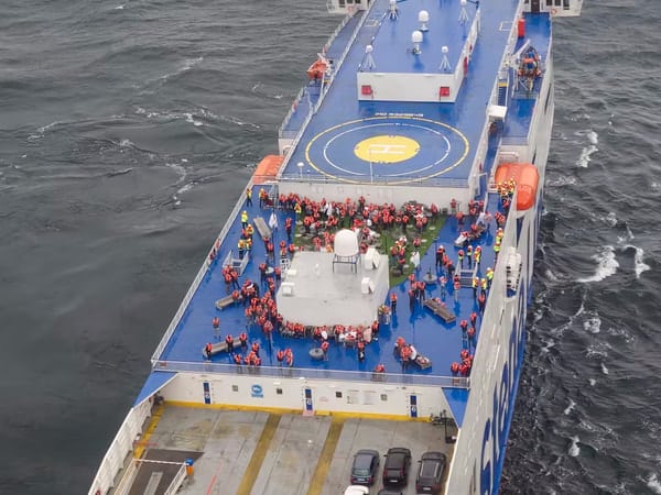 Спасательный буксир покинул Нюнесхамн и уже движется на помощь и должен прибыть к терпящему бедствие парому как раз через три часа.