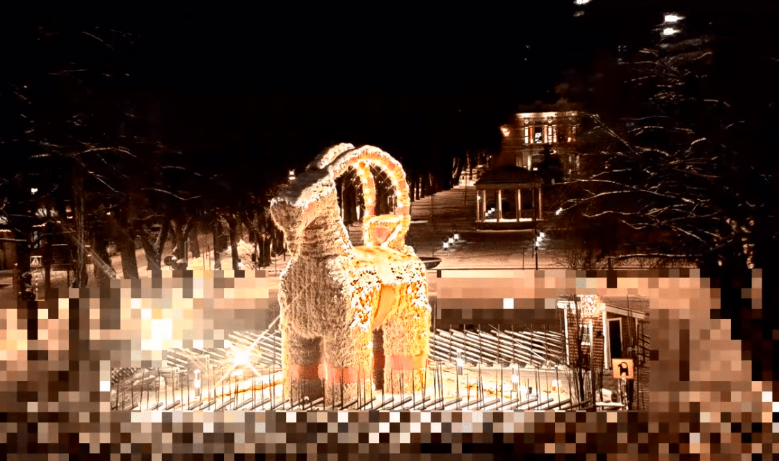Козел, называемый Евлебокен, известен во всем мире ежегодной битвой между анонимными поджигателями, которые пытаются сжечь его дотла, и городскими властями, которые пытаются сохранить его нетронутым до окончания Рождества.