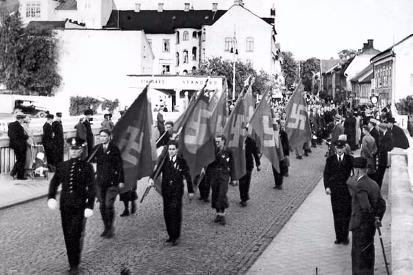 (на фото: марш шведских нацистов в Мариестаде в 1935 году)