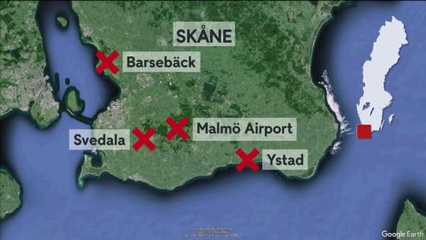А ранее вечером местная полиция получила сообщения о дронах, летающих вдоль побережья Швеции. Именно там, где находится выведенная из эксплуатации атомная электростанция «Барсебек», являющаяся, тем не менее, охраняемым объектом. Также вечером в пятницу и ночью в субботу дроны были замечены в нескольких местах провинции Сконе.