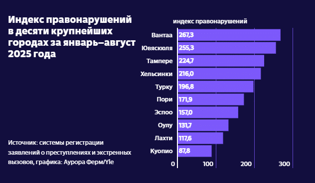 Вантаа, Ювяскюля и Тампере оказались лидерами по нарушениям общественного порядка среди крупных городов Финляндии.