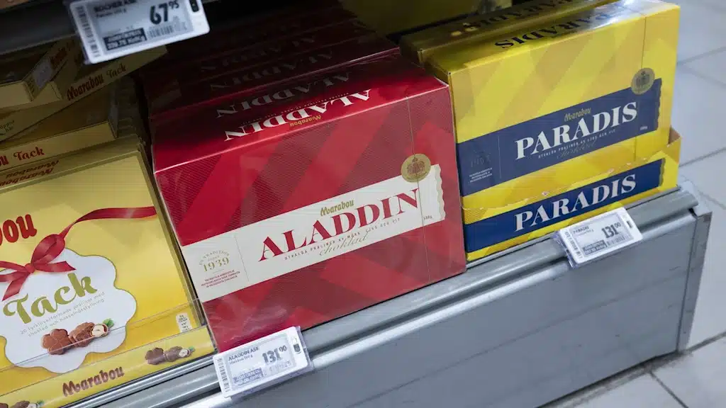 В преддверии рождественских праздников в этом году несколько видов praliner покинут классическую шоколадную коробку Aladdin. В то же время, как «Aladdin», так и «Paradisaske» уменьшатся в размерах с 500 г до 410 г, сообщает Mondelēz. Пралине, которые оставляют место для новых вкусовых ощущений, — это клубничный крисп и апельсин с корицей. «Осенняя нуга» и «Руссин с ромом» исчезают из-за изменения размера. Новые пралине — «Хрустящая корочка мечты» и ванильная помадка. Майя Бьюрестрем, бренд-менеджер Marabou, говорит, что «для нас важно учитывать пожелания и вкусовые предпочтения шведов. Мы также хотим обеспечить разнообразие ассортимента, чтобы каждому нашлось что-то по вкусу”.