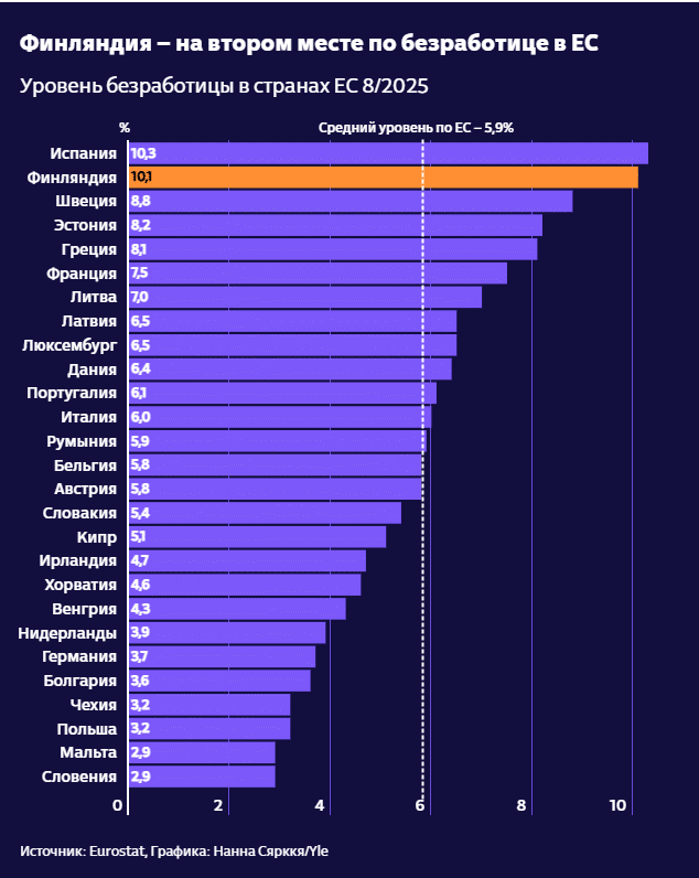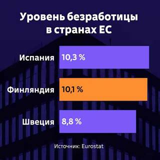 Финляндия оказалась среди стран с самыми высокими показателями безработицы в Европе. Она занимает второе место сразу после Испании.