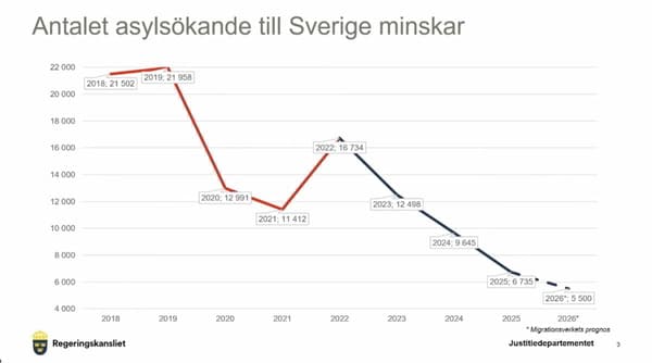 Уровень иммиграции лиц, рассматривающих Швецию, как место безопасного убежища, продолжает снижаться. В 2025 году число таких людей сократилось примерно на 30 процентов по сравнению с предыдущим годом.