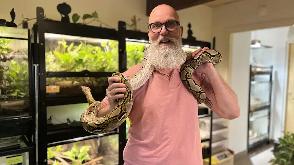 В центре Hässleholm Рикард Люнггрен живёт со своей семьёй и коллекцией из 35 змей — от ужей до сетчатого питона.