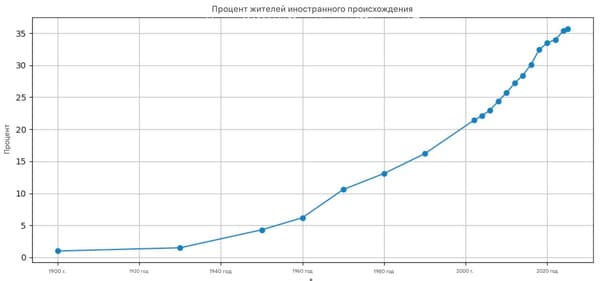 В 1930 году в Швеции доля лиц с иностранным происхождением составляла 1.5 процента, а на конец 2025 года эта цифра составляет 35.7 процента. По этому показателю Швеция является одной из самых неоднородных стран западного мира после Соединённых Штатов.