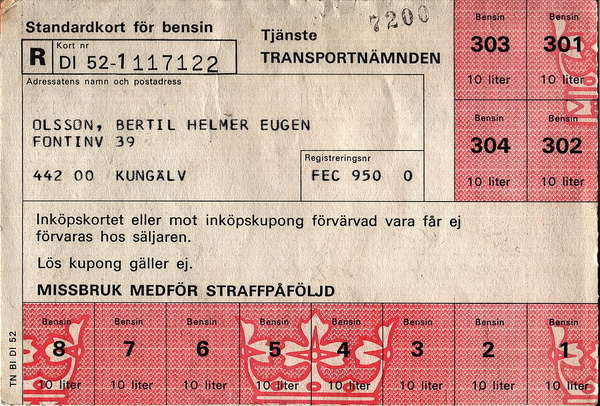 Впрочем, карточная система не является для шведов чем-то новым. Последний раз автомобильное топливо распределяли в Швеции по талонам не так давно — в 1974 году во время Арабо-израильская войны (на фото: талоны на бензин того времени).