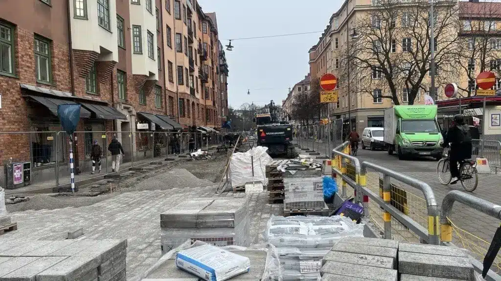 Stockholm, но на улице Rörstrandsgatan пусто, потому что улица перекопана и закрыта.
