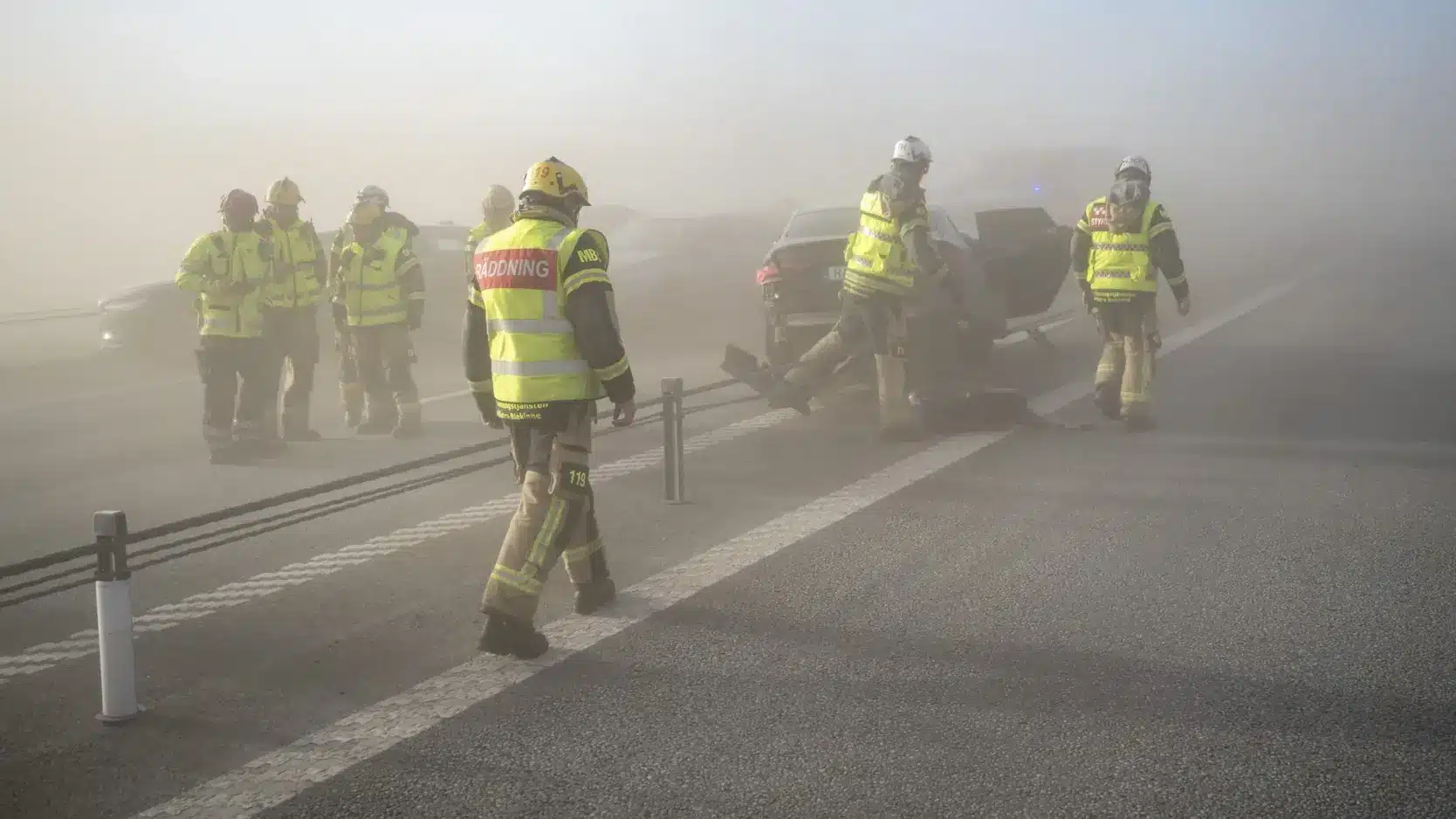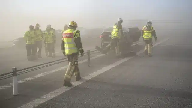 На трассе столкнулось много машин, возможно из-за песчаной пыли и плохой видимости, восемь человек увезли в больницу, дорога полностью перекрыта.