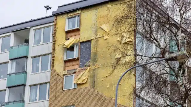 Части фасада здания обрушились на доме в Уддевалле. Территория вокруг здания была оцеплена.