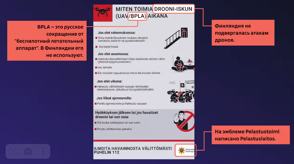 Видео с ”инструкциями по защите от атаки дронов” для финнов сначала появилось в российских соцсетях.
